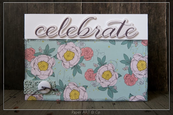 ... zartes Blumenmuster mit Spitze und einem kleinen Knopf zum edlen "Celebrate" Schriftzug,