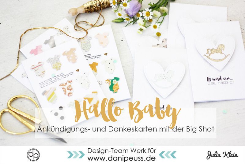 Wenn ein Baby unterwegs ist möchte man seinen Liebsten ja am besten sofort und trotzdem irgendwie auf persönlichem Weg Bescheid sagen. Manchmal wohnt die Familie oder die beste Freundin aber einfach zu weit weg, um sich für diese Angelegenheit treffen zu können. Aber was ist denn, wenn man einfach eine ganz simple und doch aussagekräftige Grußkarte verschickt die man fix mit der Big Shot (oder einer anderen Stanzmaschine) selbst machen kann?