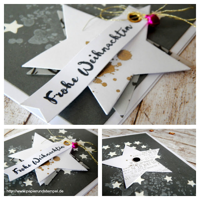 Ach, da habe ich gestern noch herum gejammert, dass die Weihnachts-Muse sich nicht blicken lässt... irgendwie scheint sie mich dann doch erhört zu haben, denn heute hatte ich einen ganz wundervollen Tag in meiner Weihnachtswerkstatt. Entstanden ist unter anderem eine Weihnachtskarte im Längsformat (ca. 10,5 cm x 21 cm) mit einem abnehmbaren Stern und einem kleinen Mixed-Media Touch.