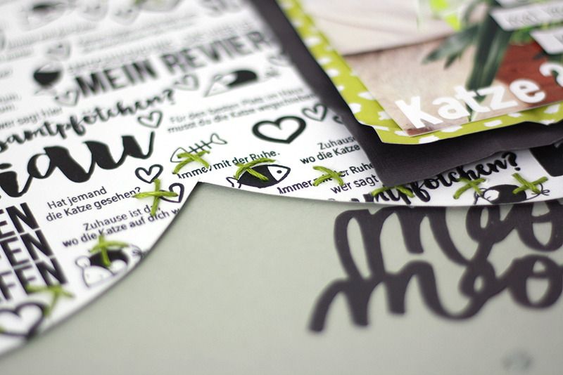 Ich freue mich auf jedenfall sehr darüber und habe zwei Scrapbooking Layouts gestaltet, für die ich Muster mit den neuen Klartext-Stempelsets "wuff" und "miau" gestempelt habe. Das Katzenlayout zeige ich euch jetzt mal direkt.