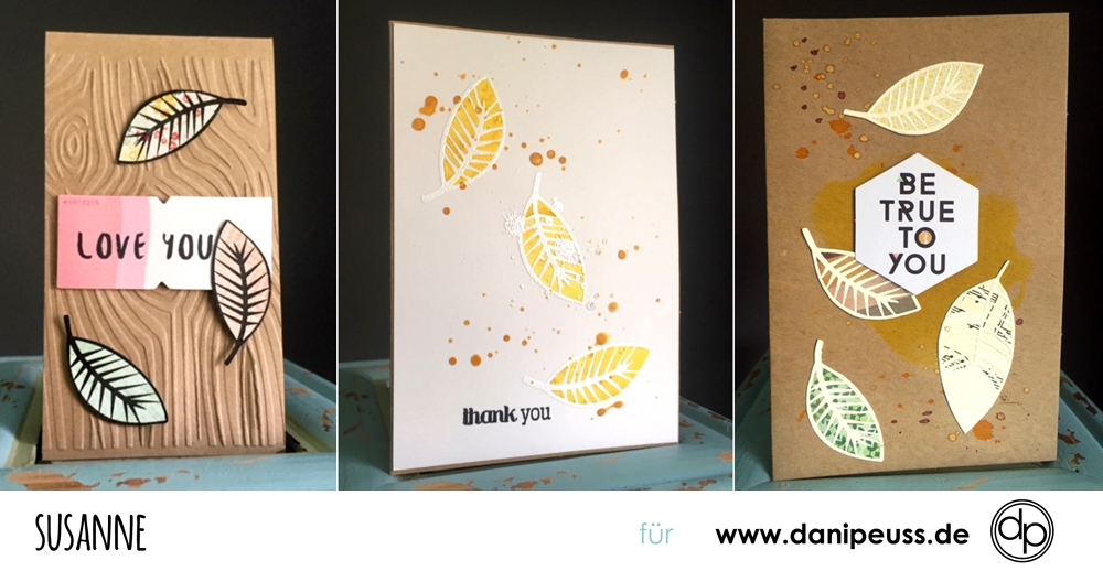 Susannes Karte als zweite Gewinnerin gewählt und sie gleichzeitig eingeladen, als Gastdesignerin für eine neue - diese - Challenge aufzutreten. Das sind ihre Inspirationen für diese Challenge. Da Susanne keine Blattstempel zur Verfügung hatte, verwendete sie einfach einen Federnstempel - klasse Idee und fällt überhaupt nicht auf!