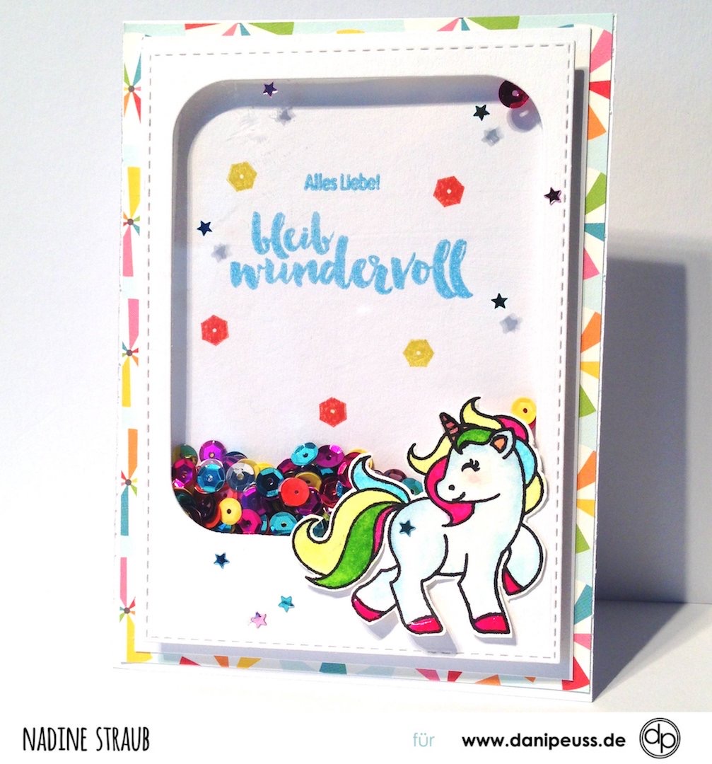 Nadines Karte als zweite Gewinnerin gewählt und sie gleichzeitig eingeladen, als Gastdesignerin für eine neue - diese - Challenge aufzutreten. Das ist ihre Inspiration für diese Challenge - sie hat eine oberfrohe bunte Schüttelkarte mit den