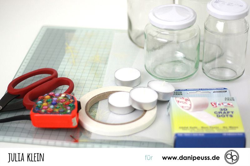 Tonic Papiertrimmer# Maßband, Teelichter, leere Marmeladengläser oder