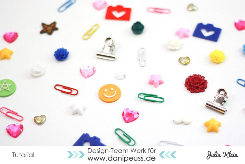Beim Aufräumen fand ich eine Dose mit bunten Büroklammern. Und wieso kombiniert man das nicht einfach mit den Dekoteilchen? Geht schnell, sieht super süß aus und man kann sie auch noch verschenken wenn man jemanden kennt der z.B. vollkommen dem Filofaxing verfallen ist.