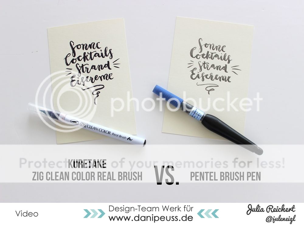 Für alle Freunde des Brush Letterings habe ich heute ein Video, in dem ich zwei Stifte vorstelle und vergleiche. Zum einen den Pentel Aquash Brush Pen und zum anderen den ZIG Clean Color Real Brush von Kuretake. Beide Stifte sind schon "fertig befüllt" und man kann sofort mit ihnen losschreiben, ohne dass man erst einen geeigneten Pinsel, Wasser und Tusche hervorkramen muss. Wer die Stifte in Aktion sehen mag, der findet den Link zum dazugehörigen Video wie immer am Ende des Posts nach den Bildern...
