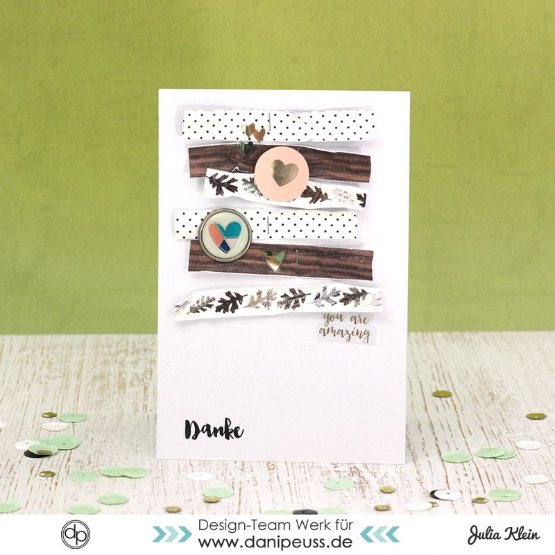 Für diese beiden Karten habe ich die Herstellerstreifen der Papiere aus dem Novemberkit benutzt.