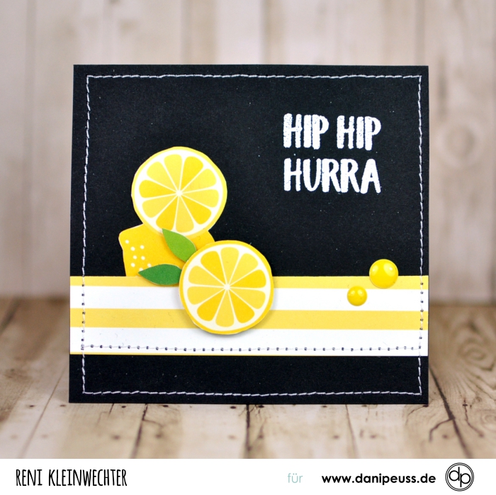 Ein paar ausgeschnittene Zitronen aus dem Designpapier - schon hat man tolle Akzente für eine Karte: