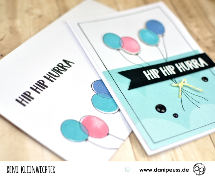 Wie ihr im Video sehen konntet, habe ich aus einem Stück Designpapier gleich zwei Karten gestaltet. Natürlich mit dem ober genialen Luftballon-Set: