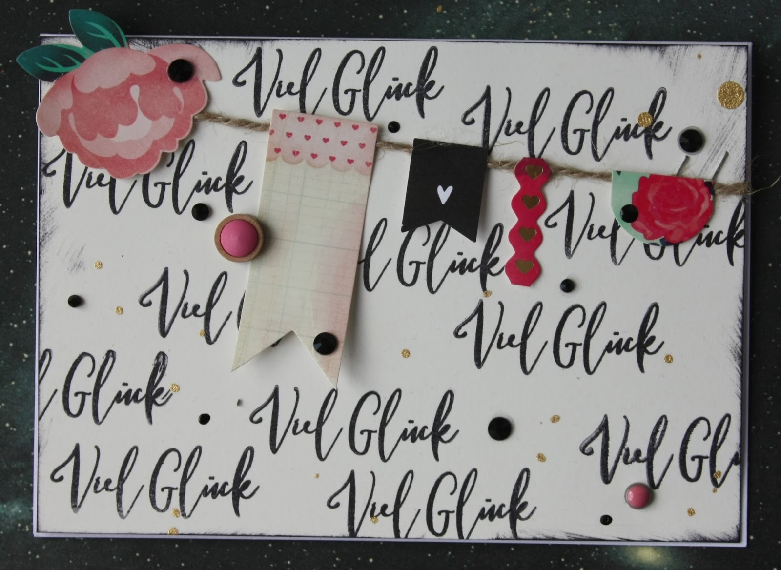 gestempelten "Herzlichen Glückwunsch" und den verwischten Rändern erzeugt Katja einen tollen vintage Hintergrund: