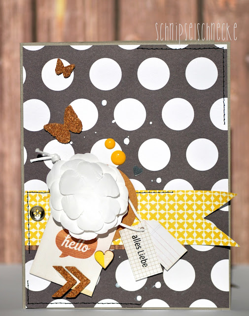 Und dies sind unsere Inspirationen für diese Kartenchallenge:Biggi hat sich für gepunktetes Designpapier entschieden: