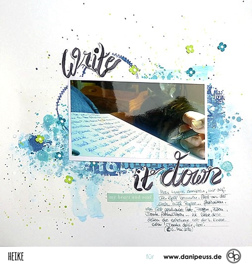 haltaus Werk als zweite Gewinnerin gewählt und sie gleichzeitig eingeladen, als Gastdesignerin für eine neue - diese - Challenge aufzutreten. Das ist ihre Inspirationen für diese Challenge. Sie hat auf ihrem Layout fröhlich rumgekleckst und damit einen schönen Blickfang gestaltet: